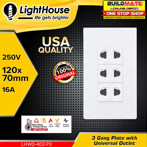 Buildmate Online DepotLIGHTHOUSE Electric 3 Gang Plate w/ Universal Outlet 120mm x 70mm 250V-16A LHWD-402-P3 •BUILDMATE• PHLH 100% ORIGINAL / AUTHENTIC ✔️HEAVY DUTY • H...