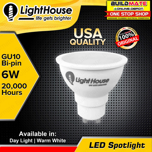 Buildmate Online DepotLIGHTHOUSE LED Spotlight 6W GU10 DAY LIGHT 6500K | WARM WHITE 3000K •BUILDMATE• PHLHAVAILABLE IN:►DAY LIGHT - 6500K►WARM WHITE - 3000KSPECIFICATION...