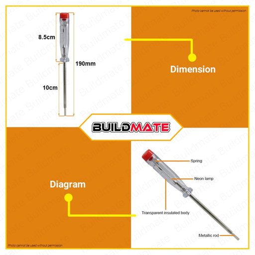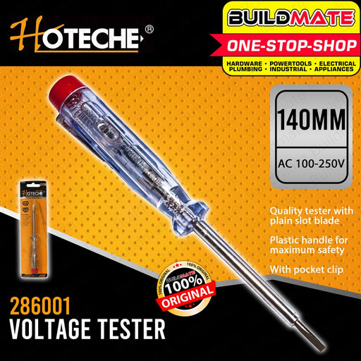 Buildmate Online DepotHOTECHE Voltage Tester 140mm Plastic Handle HTC-286001 100% ORIGINAL / AUTHENTIC •BUILDMATE• SPECIFICATIONS: ►Model: 286001 ►140MM ►AC 100-250V ►Q...