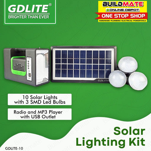 Buildmate Online DepotGDLITE GERMAN 10 Solar Emergency Light Kit w/ 3 SMD Led Bulb Radio & MP3 Player USB Outlet & Panel •BUILDMATE• 100% ORIGINAL / AUTHENTIC ✔...