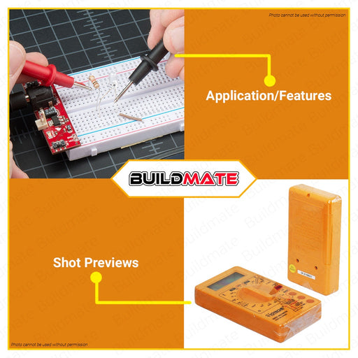 Buildmate Online DepotHoteche Multimeter 500V HTC-284803 Free x1 9V Battery •BUILDMATE• SPECIFICATIONS: ►CAT.II ►IEC-61010 ►3-1/2 Digits ►Max. Reading: 1999 ►Diode Test...