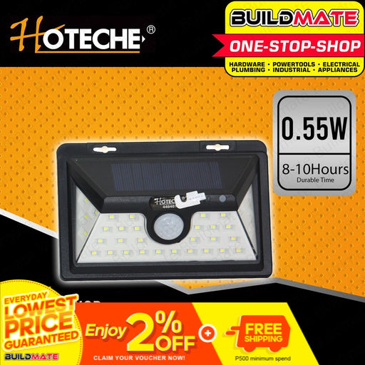 Buildmate Online DepotHOTECHE Solar Senor LED Wall Light 0.55W HTC-440401 •BUILDMATE• SPECIFICATIONS: ►Solar panel: 5.5 V / 0.55 W ►Battery: 1x 2200 mAh, 18650 Lithium b...