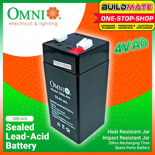 Buildmate Online DepotOMNI Sealed Lead Acid Battery 4V 4Ah Spare Battery SRB-4V4 •BUILDMATE• SPECIFICATIONS: ►Maintenance free sealed lead acid battery, 4 volts 4 amper...