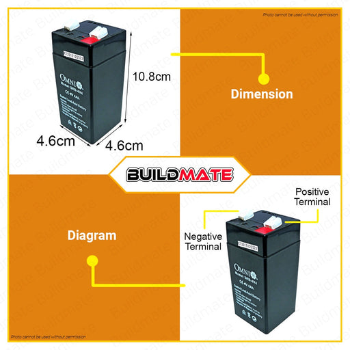 Buildmate Online DepotOMNI Sealed Lead Acid Battery 6V 4Ah Spare Battery SRB-6V4 •BUILDMATE• SPECIFICATIONS:Maintenance free sealed lead acid battery, 6-volts 4 ampere...