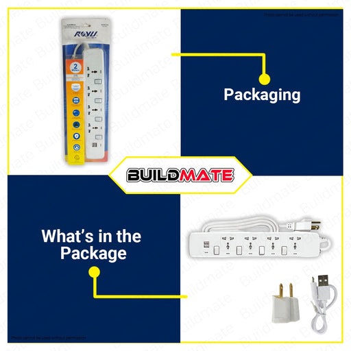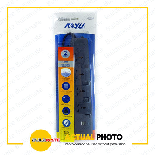Buildmate Online DepotROYU 5 GANG Extension Cord with Individual Switch & 2 USB Port REDEC725 •BUILDMATE• SPECIFICATIONS: ►Rated Voltage: 250V ►Max. Current: 10A ►M...