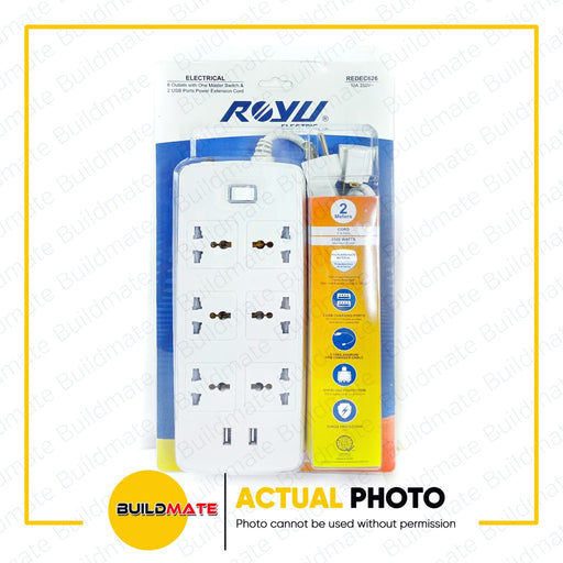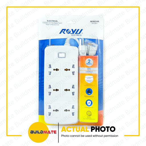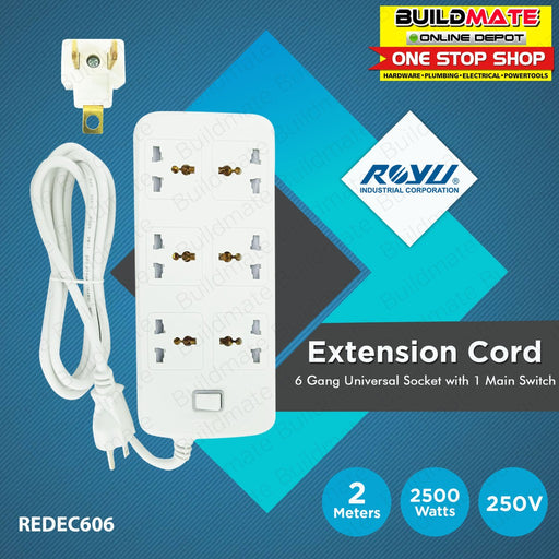 Buildmate Online DepotROYU 6 GANG Extension Cord with 1 Main Switch REDEC606 •BUILDMATE• SPECIFICATIONS: ►Model: REDEC606 ►Number of Outlets: 6-gang ►Rated Voltage: 25...