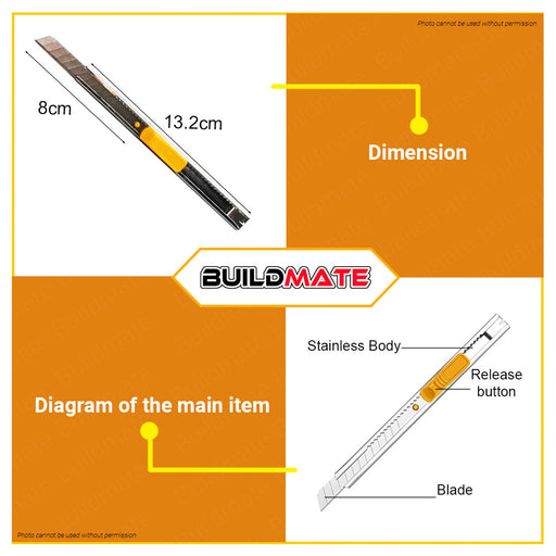 Buildmate Online DepotINGCO Snap-Off Blade Knife 132MM Handy Utility Knife Cutter Blade Knife Wide Blade Stainless Body Multi-Purpose Retractable Precision Knife HKNS180...