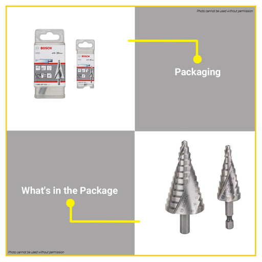 Buildmate Online DepotBUILDMATE Bosch Formed Countersink 4-20MM / 6-39MM HSS Step Drill Bit 3-Flat Shank for Rotary Drills / Drivers - BAX AVAILABLE IN: ►4-20MM - 26085...