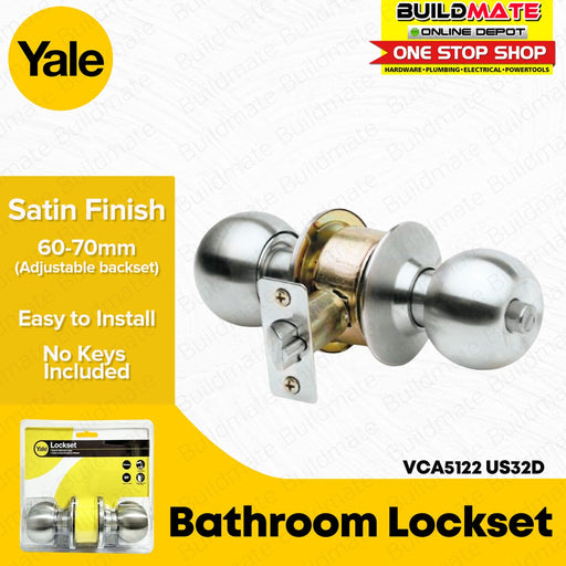 Buildmate Online DepotYALE Privacy Bathroom Lockset VCA5122 US32D •BUILDMATE• SPECIFICATIONS: ►Adjustable backset: 60/70mm ►Door Thickness: 35-45mm FEATURES: ►Idea...