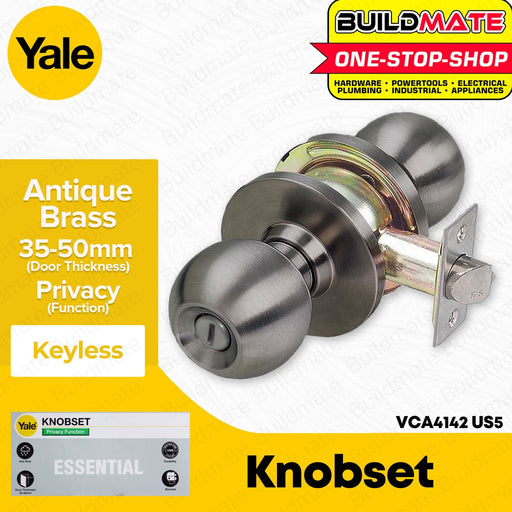 Buildmate Online DepotYALE Essential Series Privacy Function Bathroom Knobset Door Knob Antique Brass #VCA4142 US5 100% ORIGINAL / AUTHENTIC •BUILDMATE• SPECIFICATIONS:...