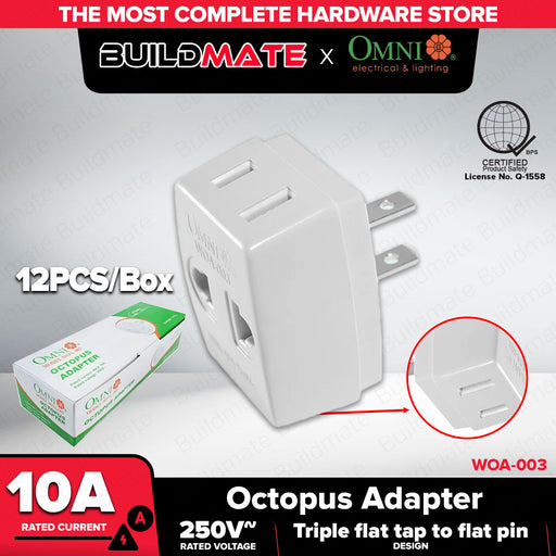 [WHOLESALE] BUILDMATE Omni 12PCS/BOX Octopus Adapter Triple Flat Tap to Flat Pin 10A 250V 3 Way Wall Tap Outlet Splitter AC Plug Adapter Socket WOA-003