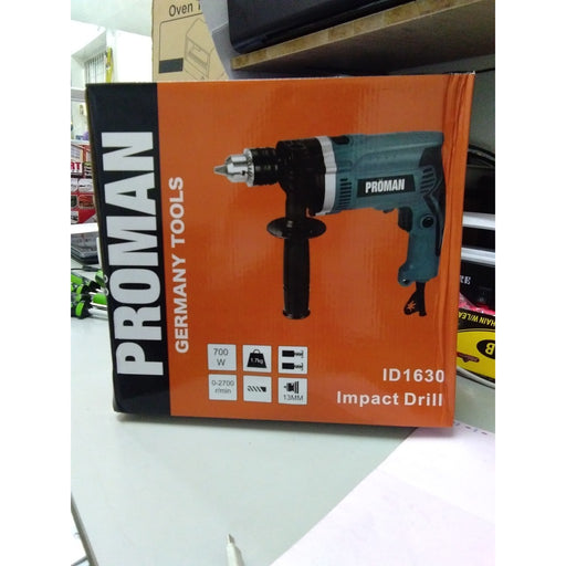 Buildmate Online DepotPROMAN Impact Drill 13mm 700W ID1630 - BUILDMATESPECIFICATION:►Input Power: 700W►Voltage: 220~230v►Frequency: 50/60Hz►No-Load Speed: 0-2700rpm►Maxi...