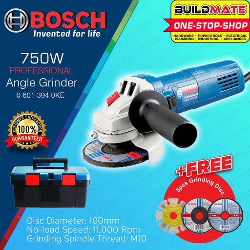 Buildmate Online Depot[COMBO KIT] BOSCH Professional Angle Grinder GWS 750-100 3 pcs Disc Wheel Set with Fisherman Tool Box Case 06013940KE •BUILDMATE• BPT SPECIFICATI...