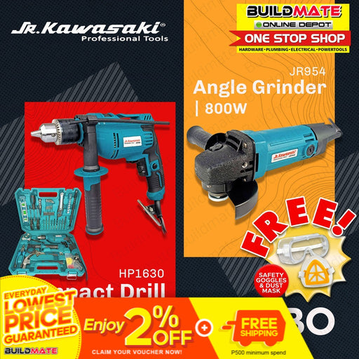 Buildmate Online Depot[COMBO] JR KAWASAKI ANGLE GRINDER JR954 + IMPACT DRILL HP1630 TOOLS SET + FREE •BUILDMATE• 100% ORIGINAL / AUTHENTIC ✔️HEAVY DUTY • HIGH QUALITY P...