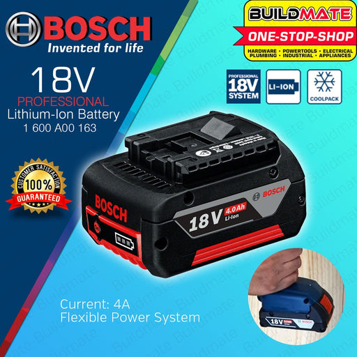 Buildmate Online DepotBOSCH Professional Lithium Ion Li-Ion Rechargeable Battery 18V 18V-LI 1600A00163 100% ORIGINAL / AUTHENTIC •BUILDMATE• SPECIFICATIONS: ►Battery v...