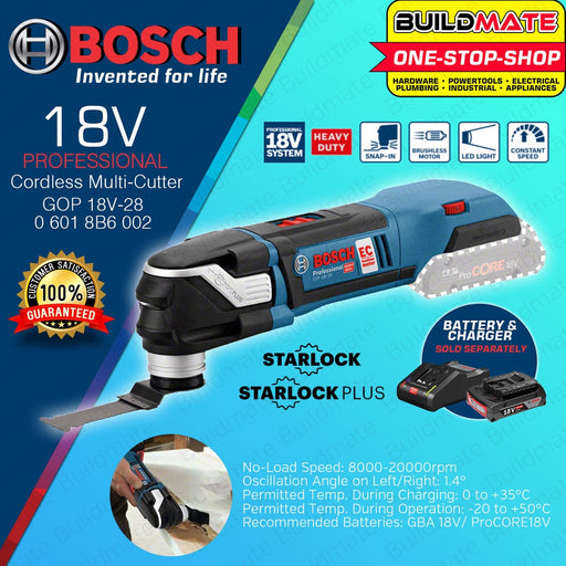 Buildmate Online DepotBOSCH Professional Lithium Ion Li-Ion Cordless Oscillating Multi-Cutter GOP18V-28 06018B6002 100% ORIGINAL / AUTHENTIC •BUILDMATE• BLC SPECIFICATI...