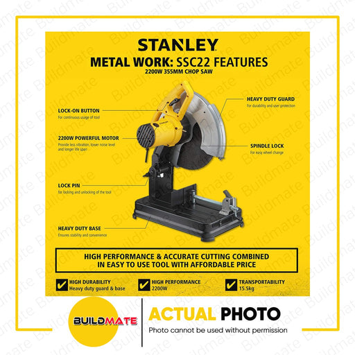 Buildmate Online DepotSTANLEY Chop Saw Cut Off Machine 2200W 355mm SSC22-B1 •BUILDMATE• 100% ORIGINAL / AUTHENTIC ✔️HEAVY DUTY • HIGH QUALITY PRODUCT ✔️AVAILABLE • READ...