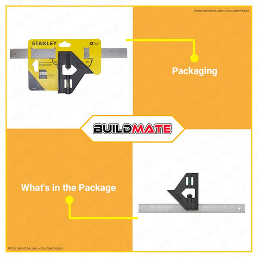 Buildmate Online DepotSTANLEY Combination Try Tri Square 12" Plastic 46-012-81 •BUILDMATE• SPECIFICATIONS: ►Size: 12" ►Lightweight, black ABS handle ►Material: Plastic ...