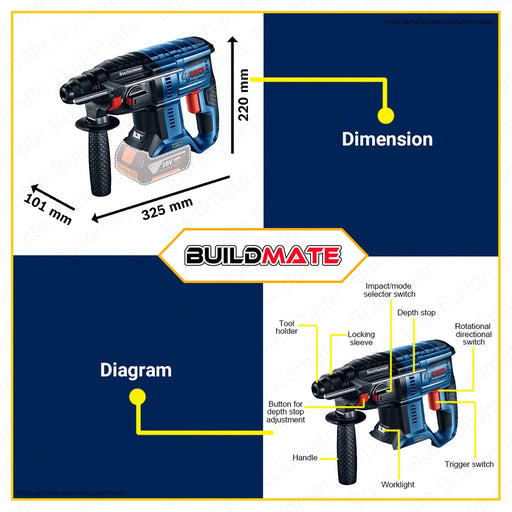 Buildmate Online DepotBOSCH Professional Lithium Ion Li-Ion Cordless Rotary Hammer Drill Solo With Case 18V GBH 180-LI EC 06119111K0 100% ORIGINAL / AUTHENTIC •BUILDMATE...
