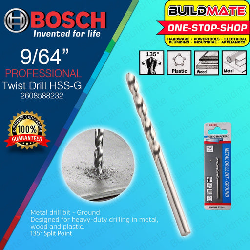 BOSCH Metal Twist Drill Bit - Ground HSS-G 5/64" - 1/2" Inch for Rotary Drills & Drivers Solid Drilling •BUILDMATE• BAX