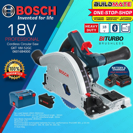 Buildmate Online DepotBOSCH Professional Cordless Lithium Ion Li-Ion Circular Saw 18V with Case GKT 18V-52 GC 06016B4000 •BUILDMATE• BLC SPECIFICATIONS: ►Weight excl. b...