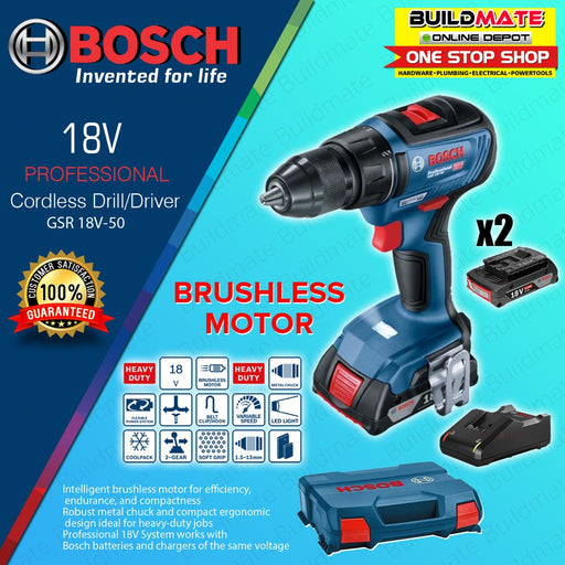 BOSCH Professional Cordless Drill / Driver 18V Lithium Ion Battery GSR 18V-50 18V •BUILDMATE• BLC