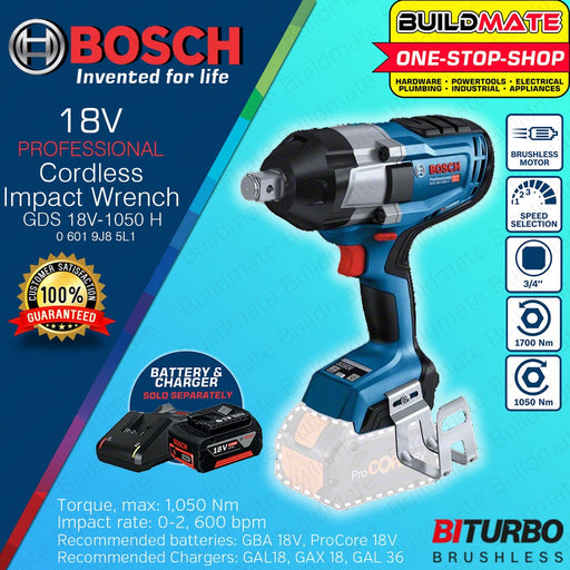 Buildmate Online DepotBOSCH Professional Cordless Lithium Ion Li-Ion Impact Drill Driver GDS 18V-1050 06019J85L1 100% ORIGINAL / AUTHENTIC •BUILDMATE• BLC SPECIFICATION...