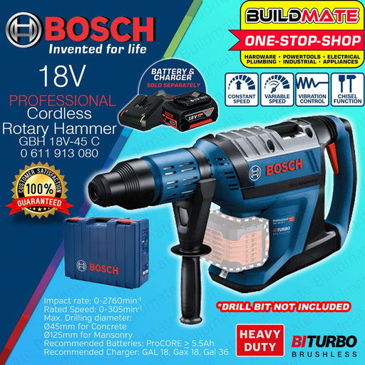 BOSCH Professional Cordless Lithium Ion Li-Ion Hammer Drill GBH 18V-45C 0611913080 •BUILDMATE• BLC