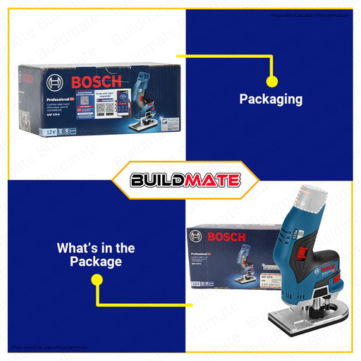 Buildmate Online DepotBOSCH Professional Cordless Lithium Ion Palm Router Solo GKF 12V-8 06016B00L0 SPECIFICATIONS: ►Battery voltage: 12 V ►No-load speed: 13,000 rpm...