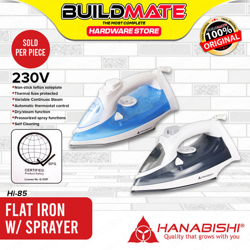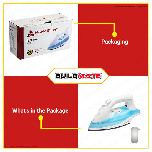 BUILDMATE Hanabishi Electric Flat Iron 1000W with Non-stick Soleplate Handheld Dry Iron For Clothes HI-86 SPECIFICATION:►Model: HI-86►Input Power: ...