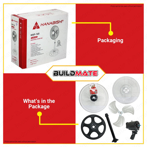 HANABISHI INDUSTRIAL  2 in 1 Electric Stand Fan Floor Fan16" CHROME HISF-160 •BUILDMATE• SPECIFICATIONS: ►16" blade ►2 in 1 stand fan and floor fa...