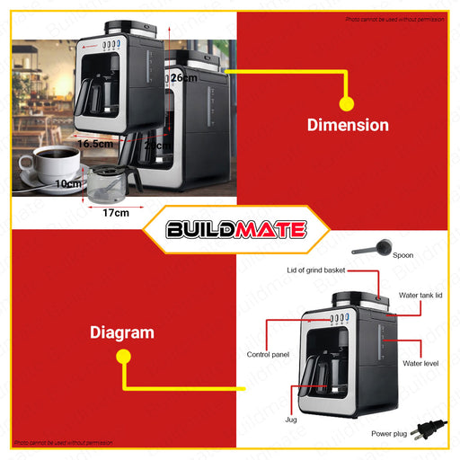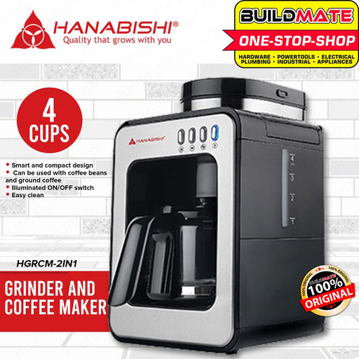 Buildmate Online DepotHANABISHI 2 IN 1 Grinder And Coffee Maker 4 CUPS HGRCM2IN1 HGRCM-2IN1 •BUILDMATE• SPECIFICATIONS: ►Smart and compact design ►Capacity: 4 cups ►Can ...