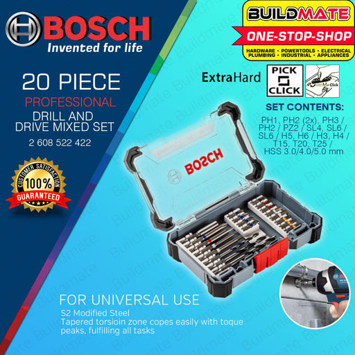 BUILDMATE Bosch 20PCS/SET Extra Hard Pick and Click Mixed Drill Bits & Drive Bit Set 2608522422 BAX