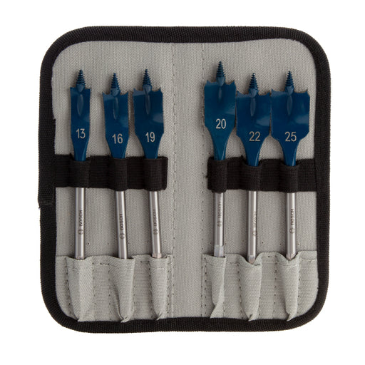 BUILDMATE Bosch 6PCS Self Cut Speed Spade Bit Set Flat Roll-up Wrap 13mm - 25mm 1/4" Hex Shank - BAX
