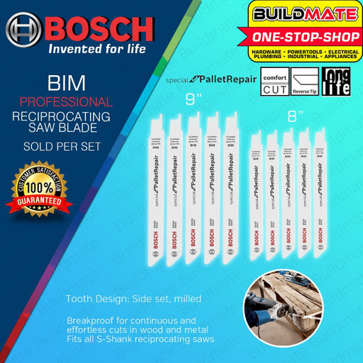Buildmate Online DepotBUILDMATE Bosch 5PCS/SET Reciprocating Saw Blade BIM 190MM / 225MM Special for Pallet Repair Cutting - BAXAVAILABLE IN:►190MM S722VFR - 2608658027►...