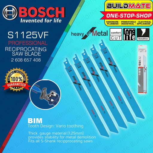 BUILDMATE Bosch 5PCS/SET Reciprocating Saw Blade Heavy for Metal Cutting S 1125 VF 2608657408 - BAX