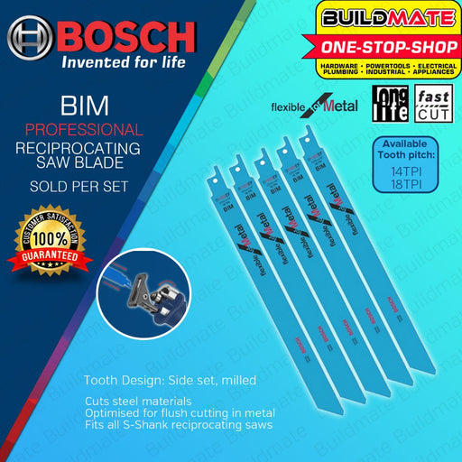 Buildmate Online DepotBUILDMATE Bosch 5PCS/SET 225MM Reciprocating Saw Blade BIM Flexible for Metal Pipes Cutting - BAXAVAILABLE IN:►14TPI 225MM S1122BF - 2608656019►18T...