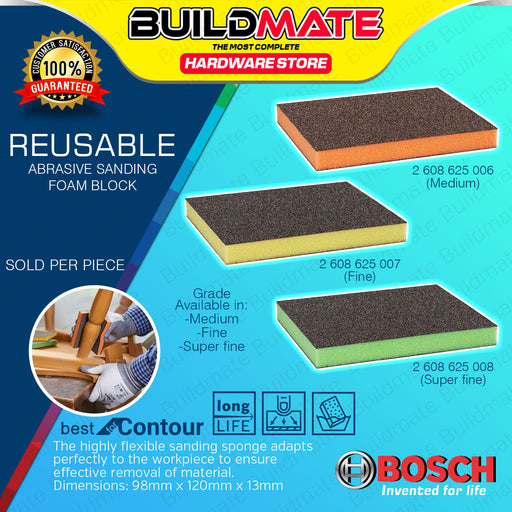 BUILDMATE Bosch 98x120x13mm S473 Contour Sanding Pad Combi Foam Abrasive Sponge FINE-SUPER FINE BAX