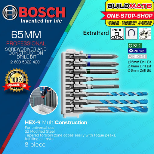 Buildmate Online DepotBUILDMATE Bosch 8PCS 65mm Extra Hard Pick and Click Screwdriver Bits & Multi Construction Drill Bit Set 2608522420 - BAX SPECIFICATIONS: ►Mode...