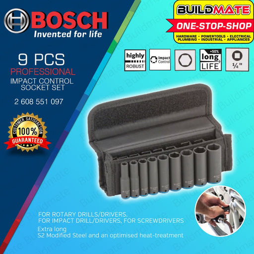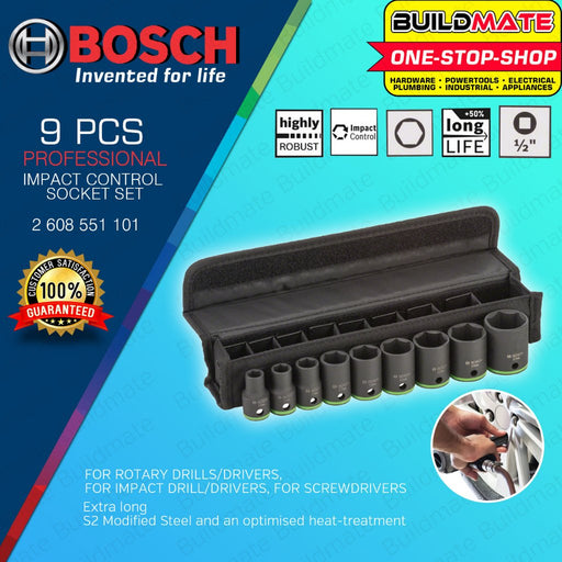 BUILDMATE Bosch 9PCS/SET 77mm Impact Control Socket Wrench Set 1/2" Shank 10mm - 27mm 2608551101 BAX