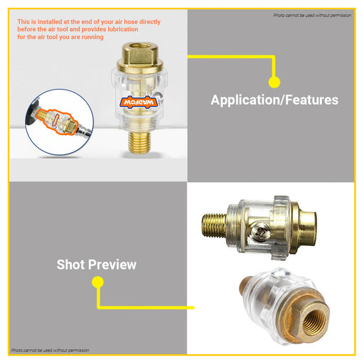 Buildmate Online DepotBUILDMATE Wadfow 1/4" Inch Lubricating Oil Head 10cc WEQ1601 - WHTSPECIFICATION:►Model: WEQ1601►1 PCS/Set►Air Inlet Size: 1/4" Inch►Capacity: 10cc►...