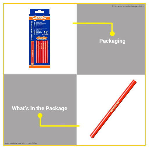 Buildmate Online DepotBUILDMATE Wadfow 12PCS Carpenter Oval Pencil Black Marker Pen Marking Tool Set WMQ1512 - WHTSPCIFICATION:►Model: WMQ1512►Carpenter Pencil (Oval)►Pe...