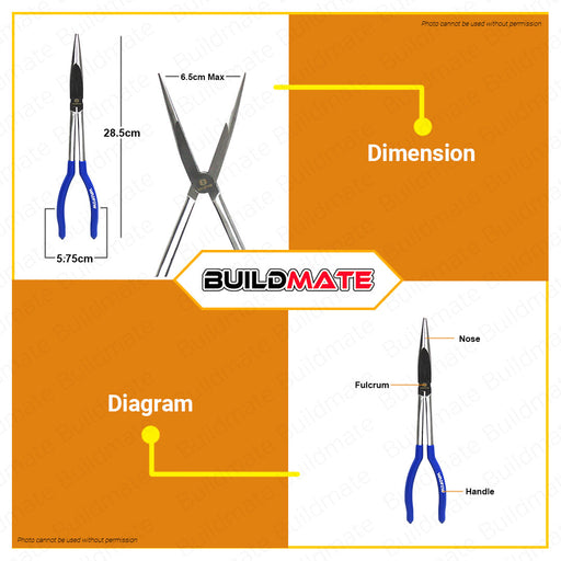 Buildmate Online DepotWADFOW Straight Long Nose Pliers 11" Inch 280mm Long Needle Nose Pliers Straight Pliers Long Reach Pliers Hand Tool Pliers Straight Bent Tip Mechan...