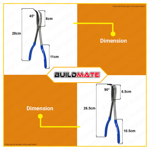 Buildmate Online DepotWADFOW Long Nose Pliers 11" Inch 45 Degree | 90 Degree [SOLD PE PIECE] Extra Long Nose Pliers Bent Tip Long Nose Pliers Bent Pliers WPL2E11 | WPL3E...