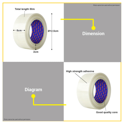 BUILDMATE Wadfow Filament Tape 0.15mmx50mmx50m Linear / Grid Type Fiberglass Clear Reinforced Bundle Strapping Packaging Sealing Tape SOLD PER PIECE - WHT