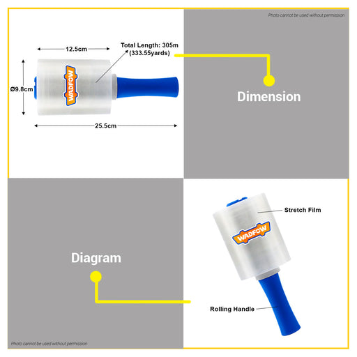 Buildmate Online DepotBUILDMATE Wadfow Stretch Wrap Film 305mm x 125mm with Rolling Handles Transparent Plastic Shrink Wrap Packaging Film WXR1303 - WHT SPECIFICATION:►M...