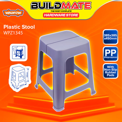 BUILDMATE Wadfow Plastic Stool 385x385x450mm Indoor / Outdoor Stackable Plastic Chair With Non Slip Rubber Pads SOLD PER PIECE WPZ1345 - WHT