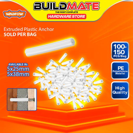 Buildmate Online DepotBUILDMATE Wadfow Extruded Plastic Anchor 5x25mm / 5x38mm White Ribbed Tubular Straight Plastic Insulation Expansion Anchor Wall Plug SOLD PER PACK...