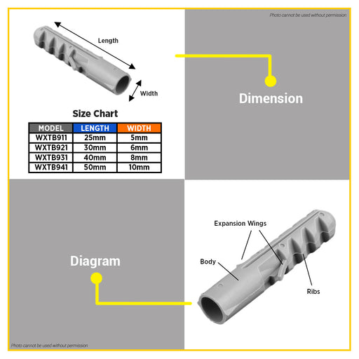 Buildmate Online DepotBUILDMATE Wadfow Universal Anchor PE Multi-Purpose Plastic Expansion Screw Concrete Fixing Anchor Wall Gripper SOLD PER PACK - WHT AVAILABLE IN:►6x...