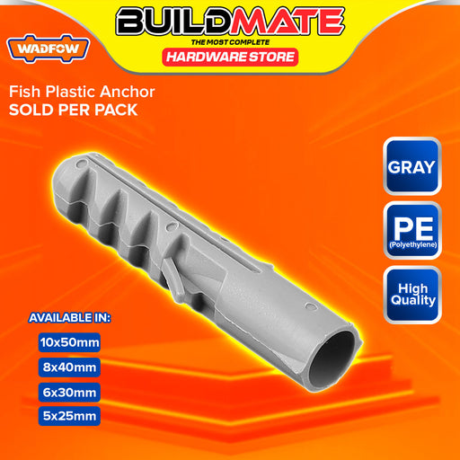 Buildmate Online DepotBUILDMATE Wadfow Fish Plastic Anchor Gray PE Expand Screw Drywall Fixing Fish Wall Gripper Plug Expansion Tube Plastic Anchor SOLD PER PACK - WHT A...
